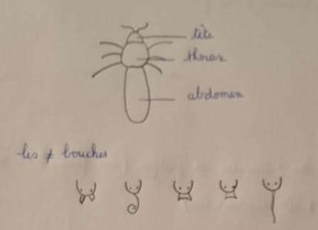 Par petit groupe, nous avons reconstitué leur cycle de vie, en cherchant le milieu de vie de chaque forme. Nous avons appris des mots comme métamorphose, mues, nymphe.